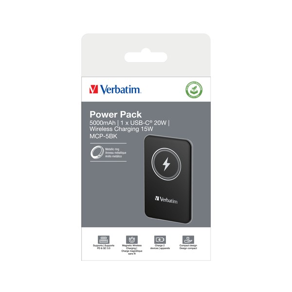 Verbatim Charge 'n' Go Polimeri di litio (LiPo) 5000 mAh Carica wireless Nero