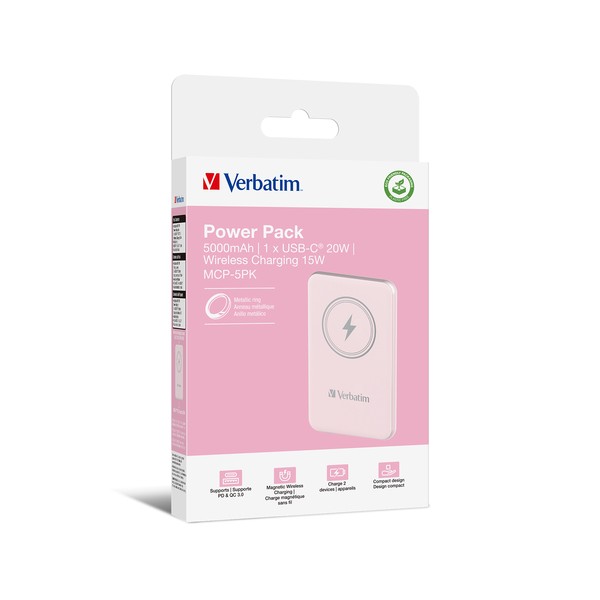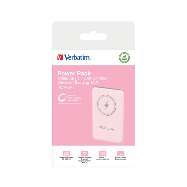 Verbatim Charge 'n' Go Polimeri di litio (LiPo) 5000 mAh Carica wireless Rosa