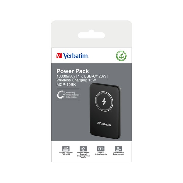 Verbatim Charge 'n' Go Polimeri di litio (LiPo) 10000 mAh Carica wireless Nero