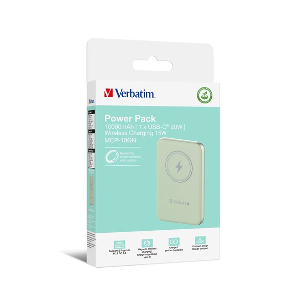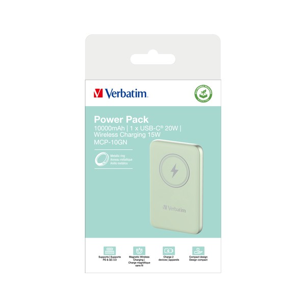 Verbatim Charge 'n' Go Polimeri di litio (LiPo) 10000 mAh Carica wireless Verde