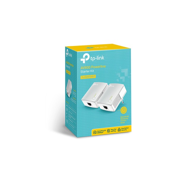 TP-LINK TL-PA4010KIT. Velocità massima di trasferimento dati: 600 Mbit/s, Standard di rete: IEEE 802.3,IEEE 802.3u, Tipo di interfaccia LAN Ethernet: Fast Ethernet. Consumi: 4,26 W, Consumi (modalità stand-by): 0,88 W. Colore del prodotto: Bianco, Certificazione: CE, FCC. Larghezza: 65 mm, Profondità: 52 mm, Altezza: 28,5 mm. Quantità per pacco: 2 pezzo(i), Cavi inclusi: LAN (RJ-45)