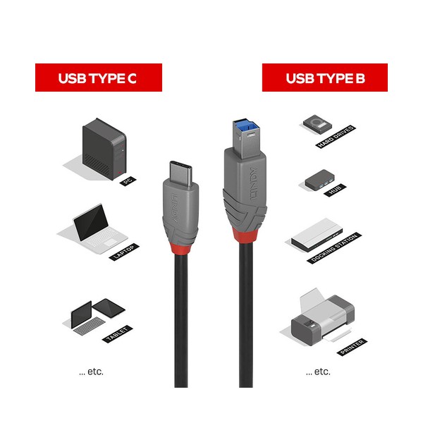 Lindy 36665 cavo USB 0,5 m USB 3.2 Gen 1 (3.1 Gen 1) USB C USB B Nero