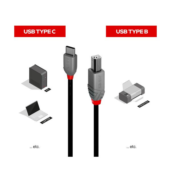 Lindy 36943 cavo USB 3 m USB 2.0 USB C USB B Nero