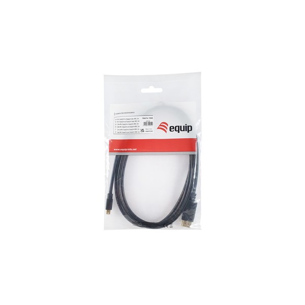 Equip 133442. Lunghezza cavo: 2 m, Connettore 1: DisplayPort, Connettore 2: Mini DisplayPort. Certificati di sostenibilità: CE, RoHS, UKCA. Quantità per pacco: 1 pz, Larghezza imballo: 175 mm, Profondità imballo: 20 mm. Larghezza scatola principale: 300 mm, Lunghezza del cartone principale: 280 mm, Altezza scatola principale: 490 mm
