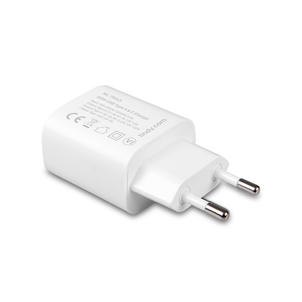 Lindy 73413. Tipo di caricatore: Interno, Tipologia alimentazione: AC, Compatibilità caricatore: Universale. Voltaggio di ingresso: 100 - 240 V, Tensione di uscita (max): 12 V, Adattatore di corrente output AC: 3 A. Quantità porte USB 2.0: 1, Quantità di porte USB Tipo C: 1, Ricarica rapida, Funzionalità di protezione dell'alimentazione: Sovracorrente, Sovraccarico, Surriscaldamento, Cortocircuito. Colore del prodotto: Bianco