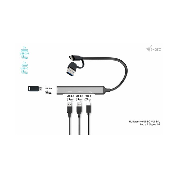 HUB pasivo universal USB-C/USB-A que conecta hasta 4 dispositivos