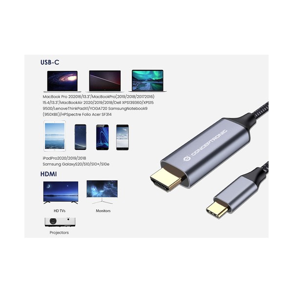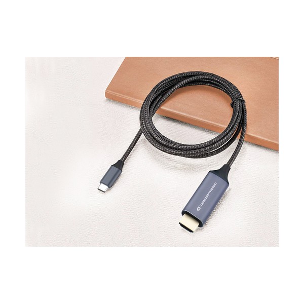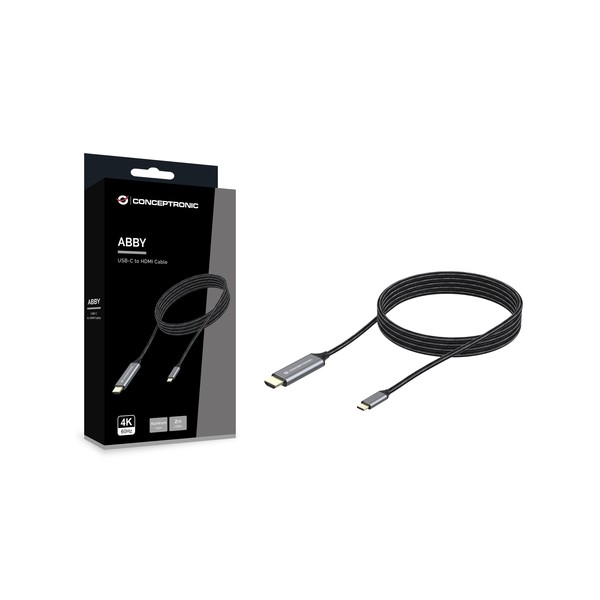 Conceptronic ABBY10G. Lunghezza cavo: 2 m, Connettore 1: USB tipo-C, Connettore 2: HDMI. Certificati di sostenibilità: CE, RoHS. Peso: 61 g, Larghezza: 2000 mm, Profondità: 20 mm. Quantità per pacco: 1 pz, Larghezza imballo: 90 mm, Profondità imballo: 25 mm. Larghezza scatola principale: 265 mm, Lunghezza del cartone principale: 460 mm, Altezza scatola principale: 200 mm
