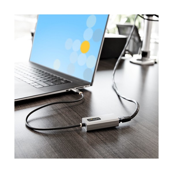 - DESIGN VERSATILE: Questo Dongle da USB-C a RJ45 è dotato di un cavo integrato da 30cm che assicura maggiore portata e flessibilità riducendo la tensione del cavo/connettore. Il NIC USB-C è alimentato tramite la porta USB Tipo-C