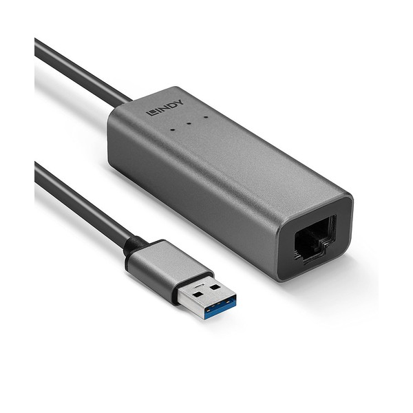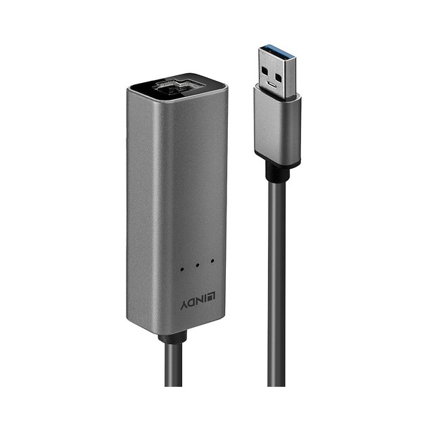 Il convertitore Ethernet da USB 3.0 tipo A a 2.5G di Lindy USB 3.0 permette agli utenti di collegare comodamente un computer o un notebook ad una rete Gigabit Ethernet 2.5 attraverso una porta USB di tipo A. Supporta velocità di trasmissione dati estremamente elevate fino a 2,5Gbps* tramite infrastrutture Cat.5e/6 già esistenti.