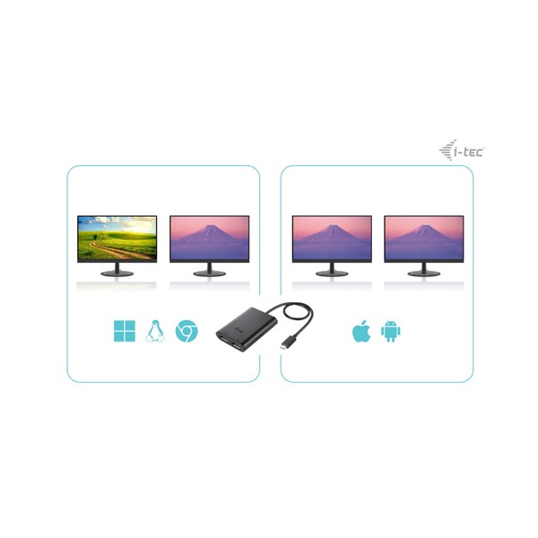 Espandi il tuo desktop con due monitor DP esterni o collega proiettori o televisori al tuo notebook, tablet o PC tramite il nuovo connettore USB-C o Thunderbolt 3. L’adattatore supporta 1x 8K / 30 Hz o 2x 4K / 60 Hz*.