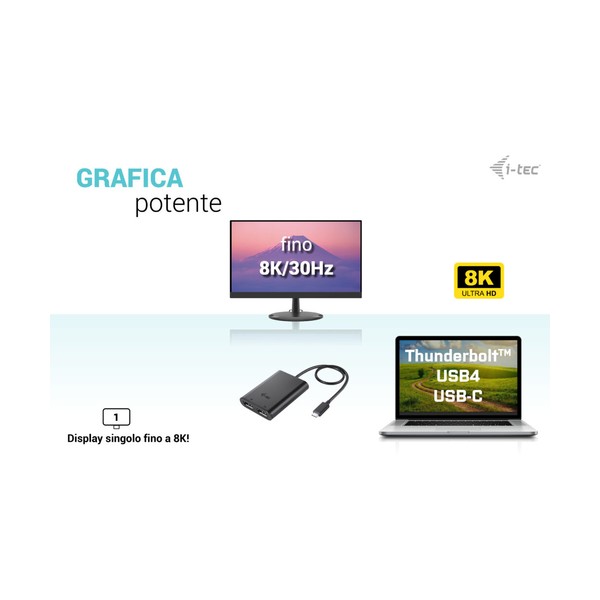 L'adattatore supporta fino a 1 risoluzione 8K / 30 Hz o 2 risoluzioni 4K / 60 Hz