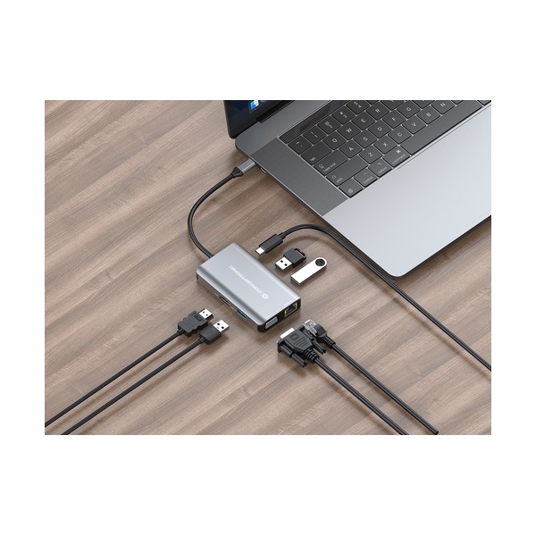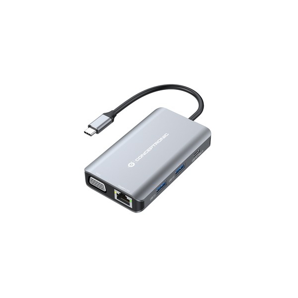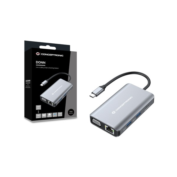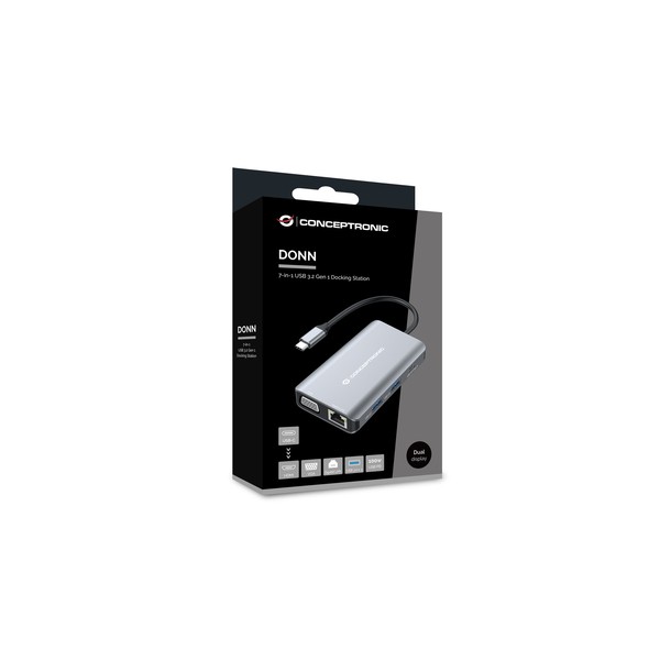 Conceptronic DONN21G. Tecnologia di connessione: Cablato, Interfaccia host: USB 3.2 Gen 1 (3.1 Gen 1) Type-C, Fornitura di alimentazione USB fino a: 100 W. Velocità trasferimento Ethernet LAN: 1000 Mbit/s. Colore del prodotto: Grigio, Tipologia HD: 4K Ultra HD, Risoluzione (digitale massima): 3840 x 2160 Pixel. Lunghezza cavo d'alimentazione: 0,2 m. Sistema operativo Windows supportato: Windows 10, Windows 11, Windows 7, Windows 8, Windows Vista, Windows XP, Compatibilità sistema operativo Mac: Mac OS X 10.10 Yosemite, Mac OS X 10.11 El Capitan, Mac OS X 10.12 Sierra, Mac OS X 10.13 High..., Altri sistemi operativi supportati: Android, ChromeOS