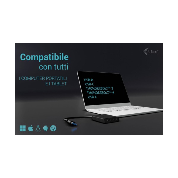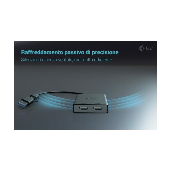 - L'adattatore supporta risoluzioni fino a 2x 4K/60 Hz, indipendentemente dalle prestazioni della scheda grafica del laptop