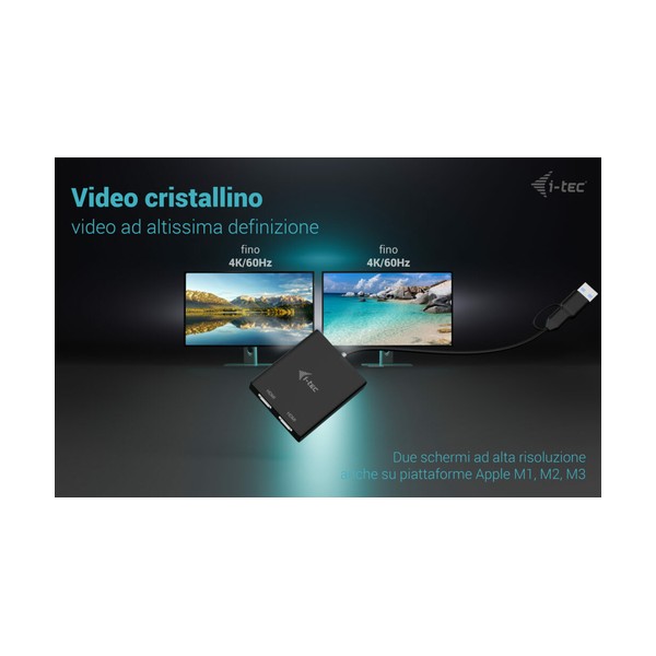Estendete il vostro desktop con due monitor HDMI esterni. L’adattatore supporta due risoluzioni 4K 4096×2160@60Hz, compreso il segnale audio.