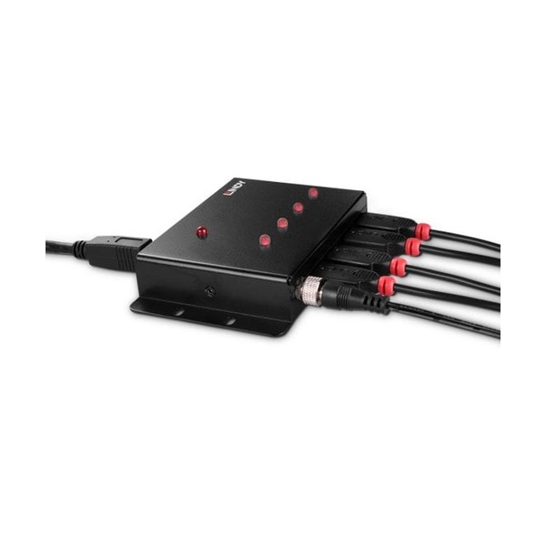 Lindy 43374. Interfaccia host: USB 3.2 Gen 1 (3.1 Gen 1) Type-B, Interfacce hub: USB 3.2 Gen 1 (3.1 Gen 1) Type-A. Velocità di trasferimento dati: 5000 Mbit/s, Colore del prodotto: Nero, Materiale della scocca: Metallo. Tipo alimentazione: dC. Larghezza: 125 mm, Profondità: 74,6 mm, Altezza: 22 mm. Quantità per pacco: 1 pz, Larghezza imballo: 260 mm, Profondità imballo: 180 mm