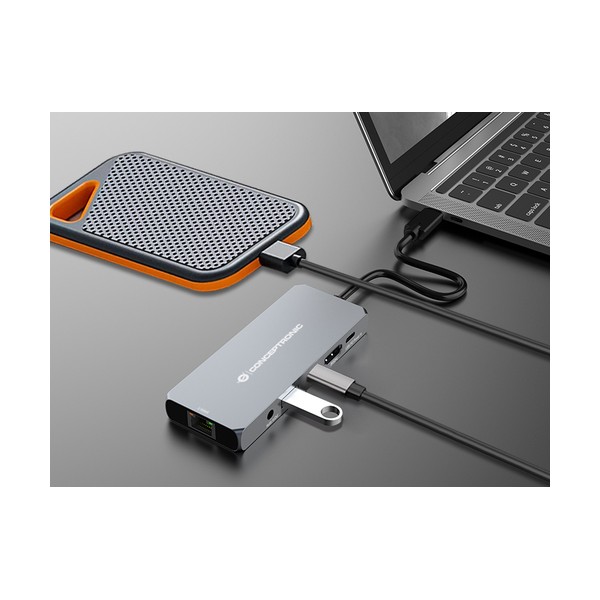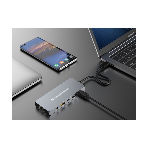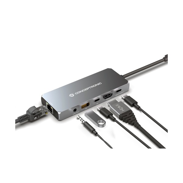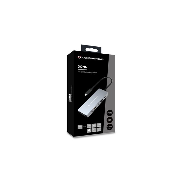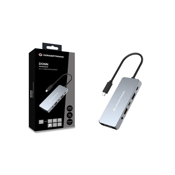 Conceptronic DONN22G. Tecnologia di connessione: Cablato, Interfaccia host: USB 3.2 Gen 2 (3.1 Gen 2) Type-C, Fornitura di alimentazione USB fino a: 100 W. Velocità trasferimento Ethernet LAN: 2500 Mbit/s. Colore del prodotto: Grigio, Velocità di trasferimento dati: 10 Gbit/s, Tipologia HD: 8K Ultra HD. Tipologia alimentazione: USB, Connettore di alimentazione: USB tipo-C. Sistema operativo Windows supportato: Windows 10, Windows 8, Windows 7, Windows XP, Windows Vista, Windows 11, Compatibilità sistema operativo Mac: Mac OS X 10.7 Lion, Mac OS X 10.7.5 Lion, Mac OS X 10.10 Yosemite, Mac OS X 10.8 Mountain Lion,..., Altri sistemi operativi supportati: Android