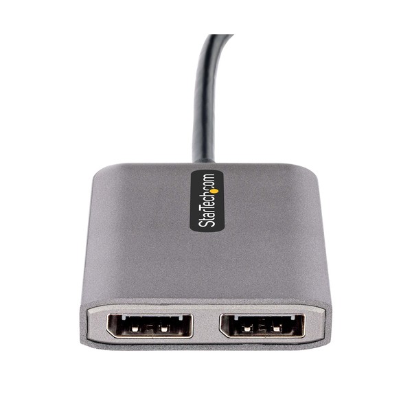 Consente di create una workstation ad alte prestazioni con due Monitor DisplayPort® indipendenti collegando un solo dispositivo USB Type-C®Questa Hub MST da USB-C a DisplayPort consente di collegare due monitor DisplayPort, utilizzando un dispositivo host USB-C compatibile con lo standard DisplayPort Alternate Mode (DP Alt Mode).4K a 60Hz con HDRLa tecnologia MST (Multi-Stream Transport) combina più segnali video in un unico segnale/stream di uscita. Questo Hub DP MST separa il singolo flusso di ingresso in due segnali indipendenti, uno per ogni display abilitato a DisplayPort. Il supporto per l'High Dynamic Range (HDR) offre un aumento del contrasto, della luminosità, dei colori e della luminosità.Connessione HostRisoluzione MassimaUscita 1Risoluzione MassimaUscita 2Tipo di HostProcessore/GraficaDisplayPort 1.4 con DSC5K 60Hz5K 60Hz*Intel 11a generazione con DSCProcessori Intel 12a generazione e successiviGPU Discreta AMD e Nvidia che supportano DSCDisplayPort 1.44K 60Hz4K 60HzIntel 10a generazione (solo Ice Lake)Processori Intel 11th Gen e successiveGPU Discreta AMD e Nvidia che supportano DP 1.4DisplayPort 1.24K 30Hz4K 30HzProcessori Intel di 8a e 10a generazione e successiviIl Multitasking SemplificatoConsente di configurate due display DP in modalità estesa o speculare. Create una workstation ad alte prestazioni aggiungendo due display 4K 60Hz indipendenti. In questo modo è possibile aumentare il multitasking in tutta l'organizzazione; con conseguente aumento della produttività.Installazione Senza ProblemiI dispositivi Windows che supportano la modalità DP Alt Mode su USB-C dispongono del supporto nativo per MST. Questo hub da USB-C a DP è compatibile con i dispositivi Windows Thunderbolt 3/4 e USB4 con processori di 11a generazione (e successive). Installazione plug-and-play, senza necessità di driver o software. Il cavo integrato da 30 cm consente installazioni flessibili, riducendo la tensione su porte e connettori. Inoltre, questo splitter DisplayPort per doppio monitor è alimentato dal bus USB e non richiede una alimentatore esterno.Questo prodotto è supportato per 3 anni, inclusa l'assistenza tecnica gratuita a vita 24/5 multilingue.The StarTech.com Advantage