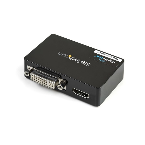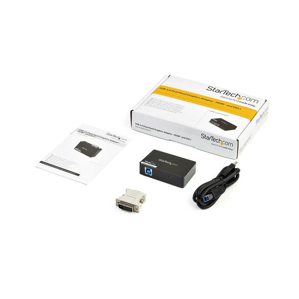 Adattatore Video Esterno USB 3.0 | Multi-Monitor | Alimentato USB | Supporta Mac & WindowsL'adattatore Dual Head USB 3.0 a HDMI® e DVI-I (USB32HDDVII) consente di trasformare una porta USB 3.0 disponibile in una porta DVI-I o VGA (l'adattatore DVI a VGA è incluso) e in un'uscita HDMI®, in grado di supportare video ad alta definizione (1080p e 1920x1200) con tecnologia audio surround 5.1 (solo dalla porta HDMI®). Ogni display può supportare contemporaneamente la risoluzione massima di 2048x1152 a 60 Hz.Potenziando l'interfaccia USB 3.0 SuperSpeed a banda larga (5 Gbps), l'adattatore video USB funziona come una scheda grafica esterna conveniente, evitando di dover aprire il case del computer per installare la scheda video. L'adattatore offre contenuti ad alta definizione a più display senza problemi e può essere utilizzato per riprodurre il desktop principale, mostrando la stessa immagine su ciascun display oppure consente di estendere il desktop su un secondo o terzo monitor raddoppiando o triplicando lo spazio di lavoro e aumentando la produttività.L'adattatore da USB 3.0 a HDMI e DVI-I è coperto dalla garanzia di 2 anni StarTech.com e comprende il supporto tecnico a vita gratuito.Requisiti di sistema consigliati:CPU: Quad Core 2,4 GHz o superiore (i5 consigliata)RAM: 4 GB o superioreThe StarTech.com Advantage