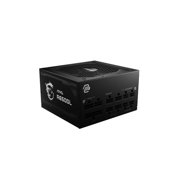 MSI MAG A650GL. Potenza totale: 650 W, Tensione di ingresso AC: 100 - 240 V, Corrente di ingresso massima (@110V): 10 A. Connettore scheda madre: 20+4 pin ATX, Tipo di cablaggio: Modulare. Utilizzo: PC, Fattore di forma dell'unità di alimentazione (PSU): ATX, Certificazione 80 PLUS: 80 PLUS Bronze. Colore del prodotto: Nero, Tipo di raffreddamento: Attivo, Diametro del ventilatore: 12 cm. Larghezza: 150 mm, Profondità: 140 mm, Altezza: 86 mm