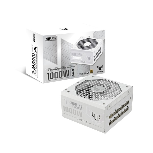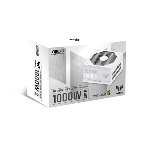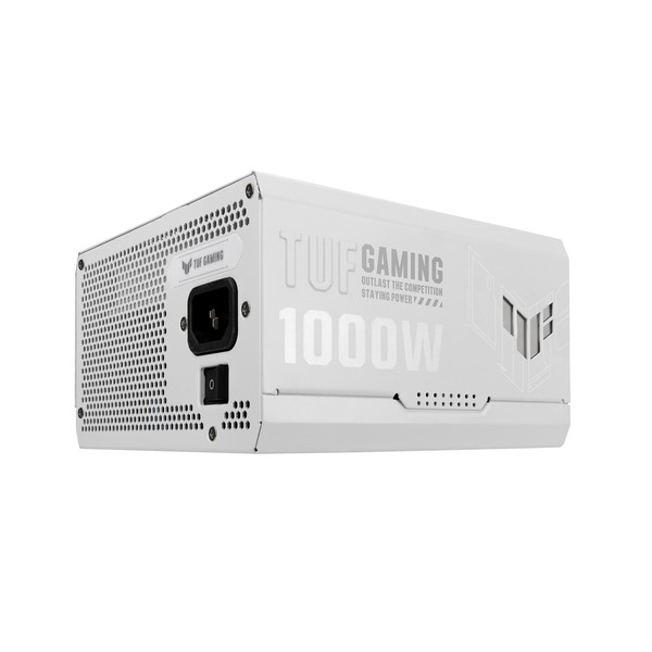 ASUS TUF Gaming 1000W Gold White Edition. Potenza totale: 1000 W, Tensione di ingresso AC: 100 - 240 V, Tipo di correttore del fattore di potenza (PFC): Attivo. Connettore scheda madre: 20+4 pin ATX, Lunghezza del cavo di alimentazione della scheda madre: 61 cm, Lunghezza del cavo di alimentazione SATA: 120,400 mm. Utilizzo: PC, Fattore di forma dell'unità di alimentazione (PSU): ATX, Certificazione 80 PLUS: 80 PLUS Gold. Colore del prodotto: Bianco, Tipo di raffreddamento: Attivo, Diametro del ventilatore: 13,5 cm. Cavi inclusi: AC, CPU, PCIe, Peripheral (Molex), SATA