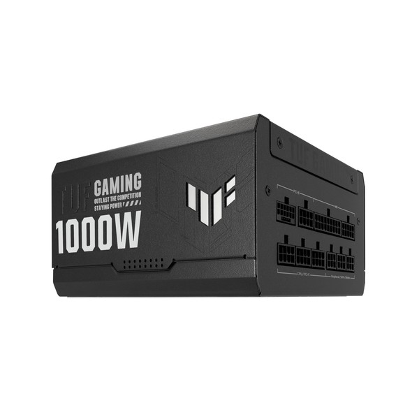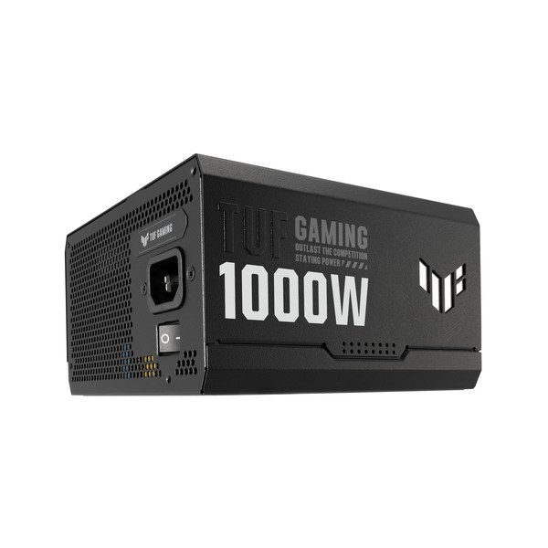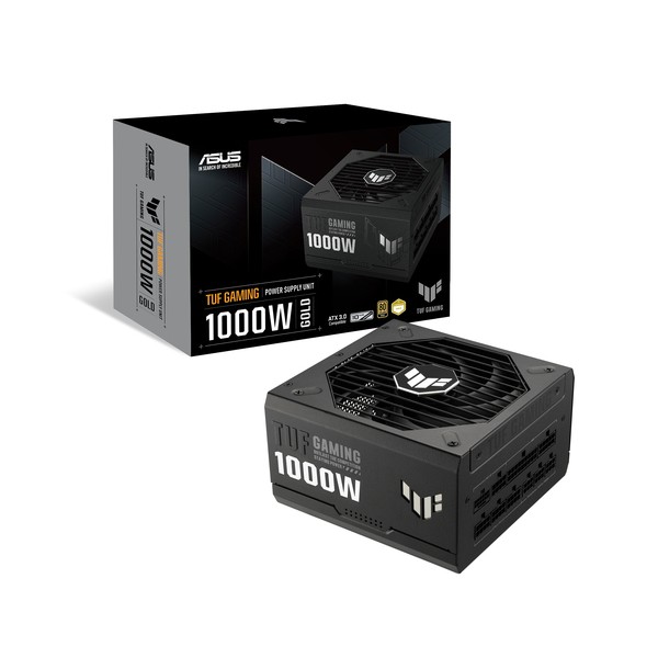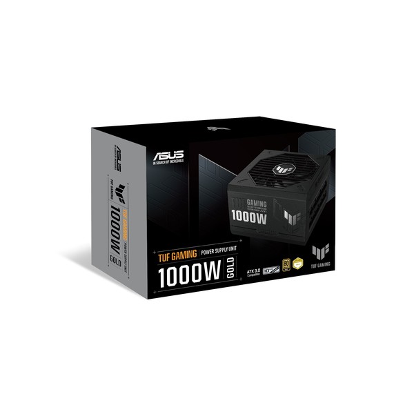 ASUS TUF Gaming 1000W Gold. Potenza totale: 1000 W, Tensione di ingresso AC: 100 - 240 V, Potenza combinata (+3.3V): 130 W. Connettore scheda madre: 20+4 pin ATX, Lunghezza del cavo di alimentazione della scheda madre: 61 cm, Lunghezza del cavo di alimentazione SATA: 120,400 mm. Utilizzo: PC, Fattore di forma dell'unità di alimentazione (PSU): ATX, Certificazione 80 PLUS: 80 PLUS Gold. Colore del prodotto: Nero, Tipo di raffreddamento: Attivo, Diametro del ventilatore: 13,5 cm. Cavi inclusi: AC, CPU, PCIe, Peripheral (Molex), SATA