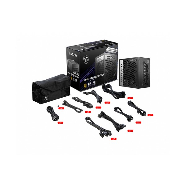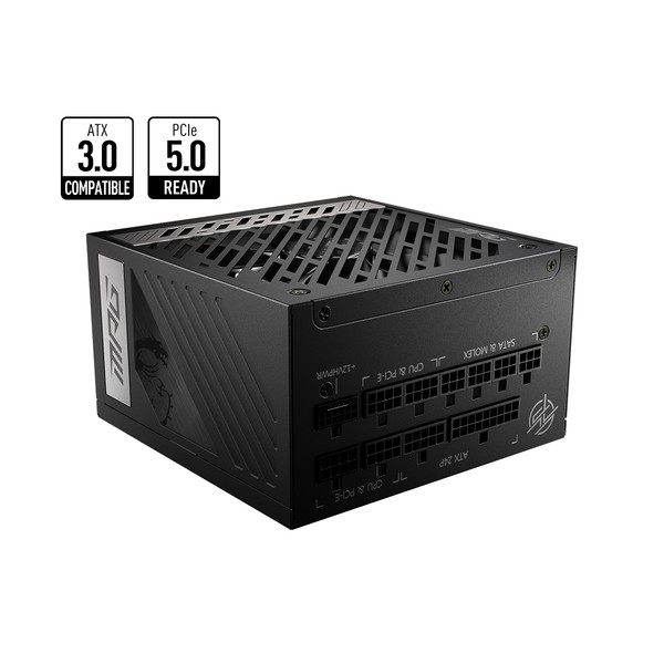 MSI MPG A850G PCIE5. Potenza totale: 850 W, Tensione di ingresso AC: 100 - 240 V, Frequenza di ingresso AC: 50/60 Hz. Connettore scheda madre: 24-pin ATX, Lunghezza del cavo di alimentazione della scheda madre: 60 cm, Lunghezza del cavo di alimentazione SATA: 950 mm. Utilizzo: PC, Fattore di forma dell'unità di alimentazione (PSU): ATX, Certificazione 80 PLUS: 80 PLUS Gold. Colore del prodotto: Nero, Tipo di raffreddamento: Attivo, Diametro del ventilatore: 13,5 cm. Larghezza: 150 mm, Profondità: 150 mm, Altezza: 86 mm