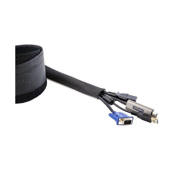StarTech.com Guaina per cavi da 3 m con chiusura a strappo, accorciabile, diametro 3 cm, organizzatore per cavi di rete / robusto avvolgicavo con maglia in poliestere, Nero (WKSTNCMFLX)