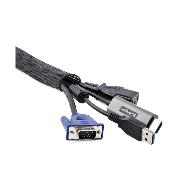 Guaina per la gestione dei cavi da 3 m, Sistema gestione cavi/tubo per caviQuesto flessibile e leggero sistema di gestione dei cavi in tessuto a rete, realizzato in poliestere e nylon intrecciato, fornisce la soluzione al disordine dei cavi. Mantiene i cavi organizzati dietro il monitor del computer, mentre consente un facile accesso ai cavi quando necessario.Pratica Gestione dei CaviLe chiusure a strappo permettono un accesso rapido e comodo ai fasci di cavi. Il portacavi si espande per accogliere ulteriori cavi, se necessario. Non sono necessari attrezzi e i cavi possono rimanere collegati quando sono inseriti nel vano di gestione dei cavi.Taglia a Qualsiasi LunghezzaUsando delle forbici affilate, puoi tagliare il raccogli cavi alla lunghezza desiderata, per adattarlo ordinatamente sotto la tua scrivania o tavolo o dietro il tuo centro Media.Il WKSTNCMFLX è sostenuto da StarTech.com per 2 anni e da un supporto tecnico gratuito a vita 24/5.The StarTech.com Advantage