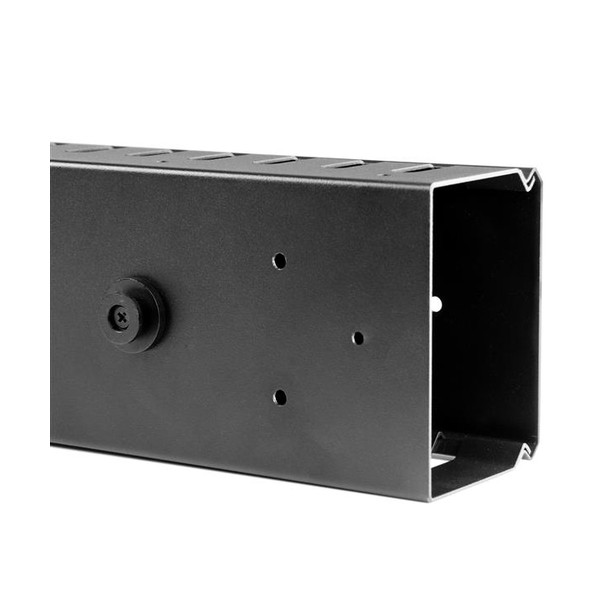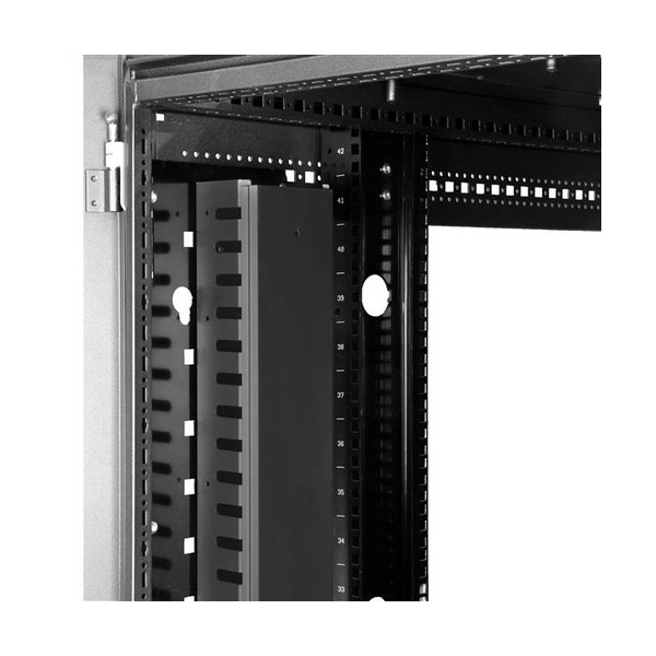 Il pannello di gestione cavi verticale utilizza una canalina con denti, che comprende un pannello di copertura che nasconde ordinatamente i cavi che l’attraversano.