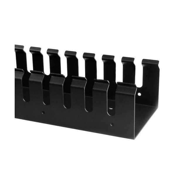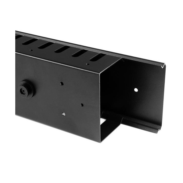 Questo pannello di gestione cavi verticale da 1,8 m (2 pannelli da 91 cm) offre un modo semplice ed efficiente termini di spazio per organizzare i cavi nel server rack. È possibile collegare il pannello di gestione cavi doppio verticalmente nel rack, per guidare in modo ordinato i cavi tra le apparecchiature installate ad altezze differenti.
