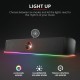 Una soluzione compatta Gli altoparlanti stereo non devono necessariamente essere ingombranti. La sound bar Trust GXT 619 Thorne offre performance da gaming in un fattore di forma compatto. Grazie al nitido audio dello stereo con una potenza di picco di 12W e alle luci RGB, questa sound bar è la soluzione ideale per tutti i gamer che vogliono recuperare un po' di spazio, senza però rinunciare a nulla. Semplice e solida La sound bar Trust Thorne è perfetta per semplificare al massimo l'esperienza di gaming. Basta collegare il cavo AUX al jack per cuffie da 3,5 mm del PC o del laptop e collegare il cavo USB all'alimentazione. Non occorre altro per giocare a un livello completamente nuovo. E grazie alle connessioni universali, la sound bar Thorne è compatibile anche con la TV! Una nuova luce I gamer esigono esperienze eccellenti. Non solo l'audio deve essere di buona qualità: anche l'occhio vuole la sua parte. La sound bar Trust GXT 619 Thorne è dotata di luci RGB regolabili, con 6 modalità di illuminazione diverse. I giochi assumeranno nuove tinte, grazie a questa sound bar. Controllo a portata di mano Grazie all'ampia manopola illuminata di controllo del volume sulla parte anteriore della sound bar Thorne, potrai regolare facilmente il volume senza distrarti dal gioco. La manopola di controllo facilmente accessibile permette di controllare e di raggiungere facilmente i 12W di potenza di picco (6W RMS) degli altoparlanti stereo incorporati.