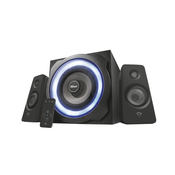 Suoni a colori Una travolgente potenza dei bassi, un suono di alta qualità e un fenomenale design gaming, tutto in un solo prodotto: il set altoparlanti 2.1 RGB GXT 629 Tytan cambierà il modo di percepire il suono. Durante l’impegno nei giochi più recenti, l'ascolto della musica o la visione di film, qualsiasi esperienza si potrà fruire ottenendo il miglior suono possibile. Questo altoparlante non eleva soltanto la potenza del suono, ma esplode anche di colore! La cangiante illuminazione LED RGB LED sul subwoofer, insieme agli altoparlanti satelliti in nero opaco si coordinerà con qualsiasi configurazione gaming. È possibile scegliere tra 7 colori fissi sincronizzati sui bassi (rosso, verde, blu, giallo, viola, celeste e bianco). Oppure si può scegliere la rotazione di tutti i colori, una rotazione di luci a effetto Breathing oppure le luci RGB sincronizzate sui bassi: totale possibilità di scelta! Un titano dell’audio Inonda il mondo di rombanti suoni gaming, attraverso questo set altoparlanti con potenza di picco di 120 W. Gli altoparlanti satelliti emettono un suono ottimale nei toni medio-alti. Tale caratteristica, unita al subwoofer in legno, dotato di un altoparlante di 7 pollici (in grado di conferire una potente profondità ai suoi gaming), garantirà un’esperienza gaming piena sotto ogni aspetto. Controllo wireless Per gestire questa potente apparecchiatura audio, è presente di serie un comodo telecomando wireless. È possibile regolare ed escludere il volume con facilità, mettere perfettamente a punto i bassi e variare le luci, nonché accendere e spegnere l’altoparlante semplicemente con un clic su un pulsante. Gestione intelligente dell'energia L’altoparlante integra la Gestione intelligente dell'energia, che consente di risparmiare sui consumi. Se l'altoparlante non viene utilizzato per 60 minuti, passa automaticamente in modalità standby. Appena si ricomincia a giocare, l’altoparlante si riattiva automaticamente. Per mantenere costantemente la piena potenza, si può disattivare la Gestione intelligente dell'energia.