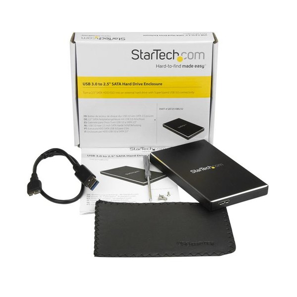 L'enclosure per disco rigido USB 3.0 SuperSpeed SATA 2,5"" SAT2510BU32 trasforma un normale disco rigido SATA da 2,5"" (HDD) o un'unità stato solido (SSD) in un disco rigido esterno portatile.