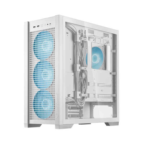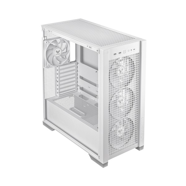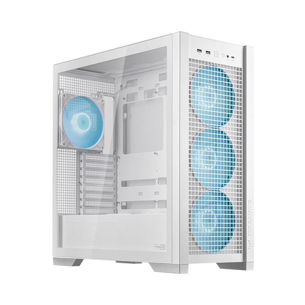 ASUS TUF Gaming GT302 ARGB. Fattore di forma: Midi Tower, Tipo: PC, Colore del prodotto: Bianco. Ventole anteriori installate: 3x 140 mm, Diametro delle ventole frontali supportato: 140 mm, Rear fans installed: 1x 140 mm. Dimensioni di hard disk drive supportati: 2.5,3.5". Larghezza: 235 mm, Profondità: 485 mm, Altezza: 520 mm. Larghezza imballo: 592 mm, Profondità imballo: 309 mm, Altezza imballo: 598 mm