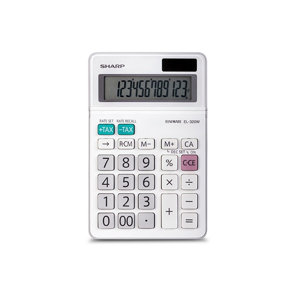 Sharp EL320WB. Fattore di forma: Desktop, Tipo: Calcolatrice di base. Cifre: 12 cifre, Righe di testo: 1 linee, Display inclinabile. Registri di memoria: 3. Alimentazione: Batteria/Solare. Colore del prodotto: Bianco