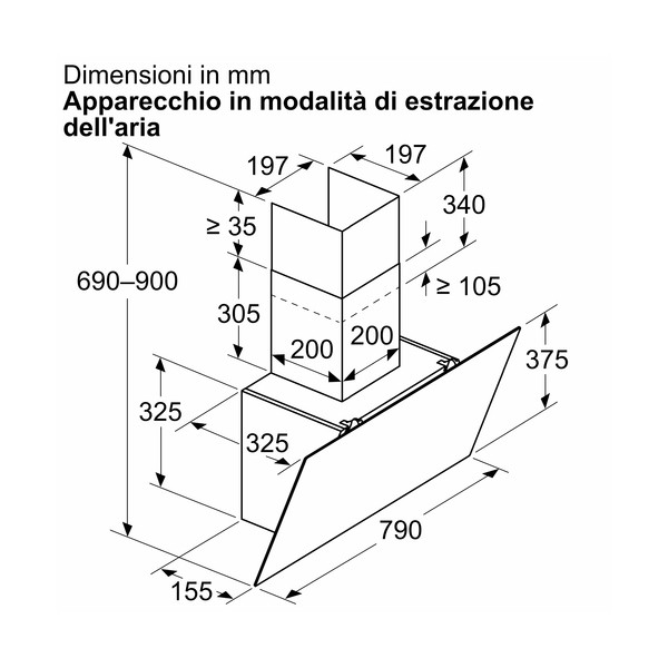 Potenza di espulsione aria: m3/h, potente e veloce da assicurare continuamente aria pulita alla tua cucina