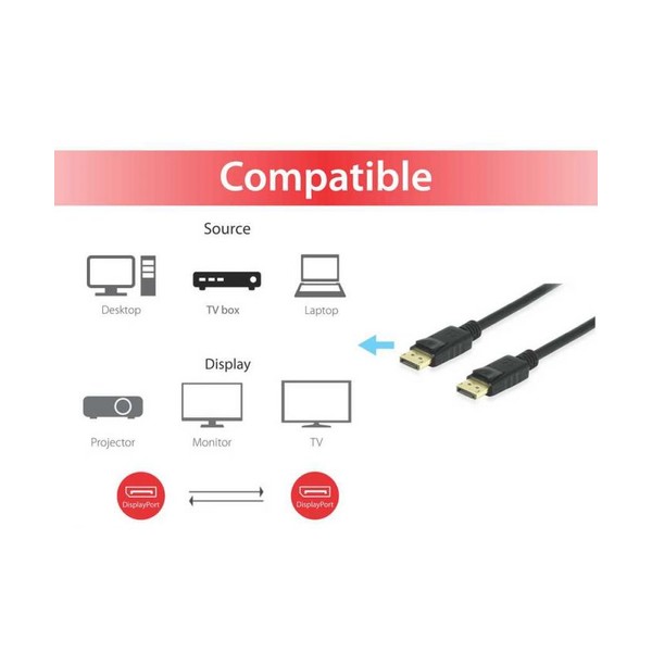 Equip 119255. Lunghezza cavo: 5 m, Connettore 1: DisplayPort, Connettore 2: DisplayPort. Certificati di sostenibilità: CE, RoHS. Peso: 404 g, Quantità per pacco: 1 pz, Larghezza imballo: 160 mm. Larghezza scatola principale: 250 mm, Lunghezza del cartone principale: 40 mm, Altezza scatola principale: 320 mm