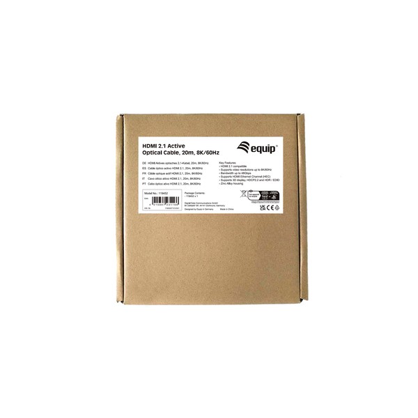 Equip 119452. Lunghezza cavo: 20 m, Connettore 1: HDMI tipo A (Standard), Genere del connettore 1: Maschio, Connettore 2: HDMI tipo A (Standard), Genere del connettore 2: Maschio, Placcatura contatti: Oro, Versione HDMI: 2.1, Compatibilità 3D, Audio Return Channel (ARC), Colore del prodotto: Nero
