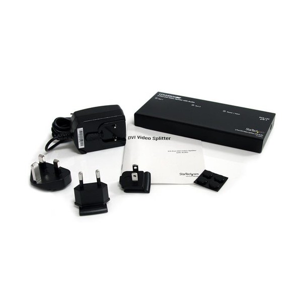 - Raddoppia il segnale come un estensore, fino a 10 metri dalla sorgente DVI. - Divide un segnale DVI per visualizzare immagini digitali nitide su due monitor con supporto per risoluzioni HD e audio stereo.
