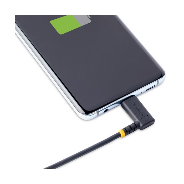 Robusto cavo ad angolo retto, consente di collegare e ricaricare i dispositivi USB Type-CQuesto robusto cavo di ricarica USB-C ad angolo retto da 15 cm può essere utilizzato per collegare e/o caricare una periferica USB. Consente di collegare comodamente i dispositivi USB Type-C con un angolo di 90 gradi rispetto al cavo per avere cavi organizzati e ordinati.Costruito per l'Uso QuotidianoQuesto resistente cavetto di ricarica USB è dotato di un armatura in fibra aramidica che protegge il cavo dalle sollecitazioni derivanti da frequenti piegature. Ciò consente al cavo di flettersi senza allungarsi eccessivamente o danneggiare il nucleo del cavo stesso.Rilievi per la Trazione FlessibiliIl cavo USB è stato progettato per prevenire la tensione del cavo sul connettore. Le modanature antistrappo extra-lunghe sono state testate per resistere a oltre 5.000 cicli di piegamenti con un angolo di 180°.Qualità di Connessione SuperioreIl cavo resistente supporta tutte le specifiche USB fino a USB 2.0, garantendo una connessione affidabile per tutte le periferiche USB Tipo-C. Supporta fino a 3A per la ricarica di dispositivi abilitati USB-C.Questo prodotto è supportato a vita, compresa l'assistenza tecnica gratuita a vita 24/5 in più lingue.The StarTech.com Advantage