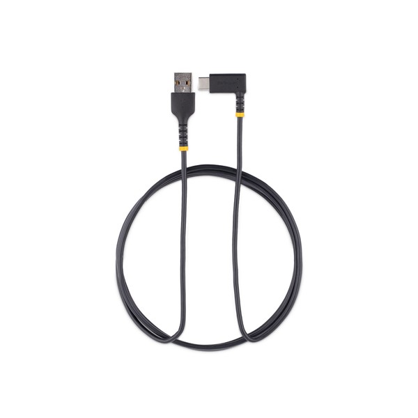 StarTech.com Cavo da USB-A a USB-C a 90° da 2m - Cavetto di Ricarica Veloce USB Tipo C per uso intensivo - Cavo Dati da USB 2.0 Type-A a Type-C in Fibra Aramidica - 3A - Nero (R2ACR-2M-USB-CABLE)