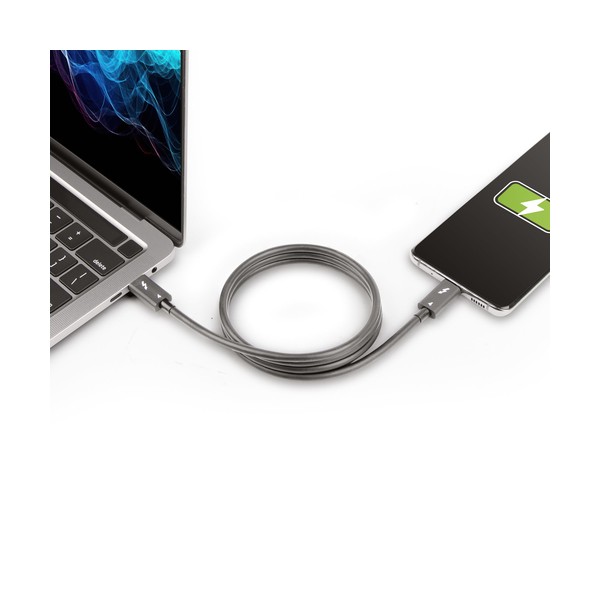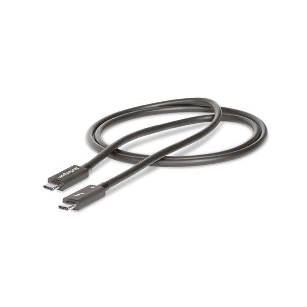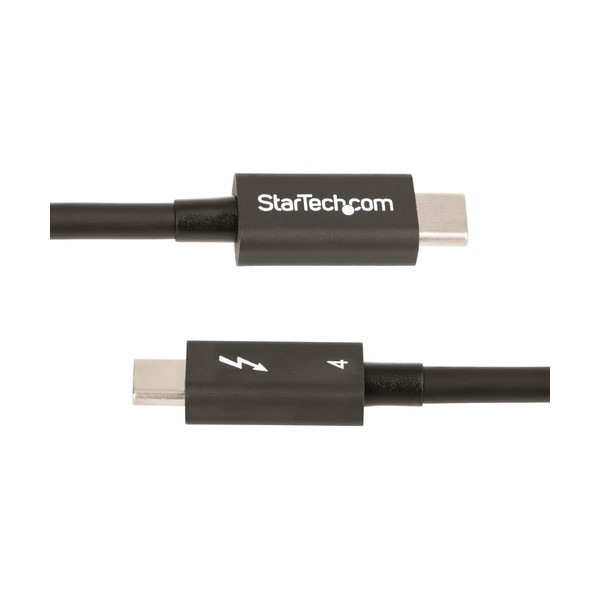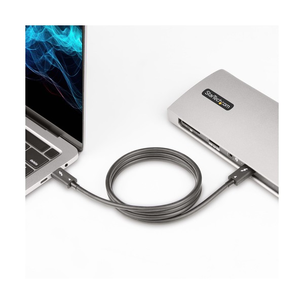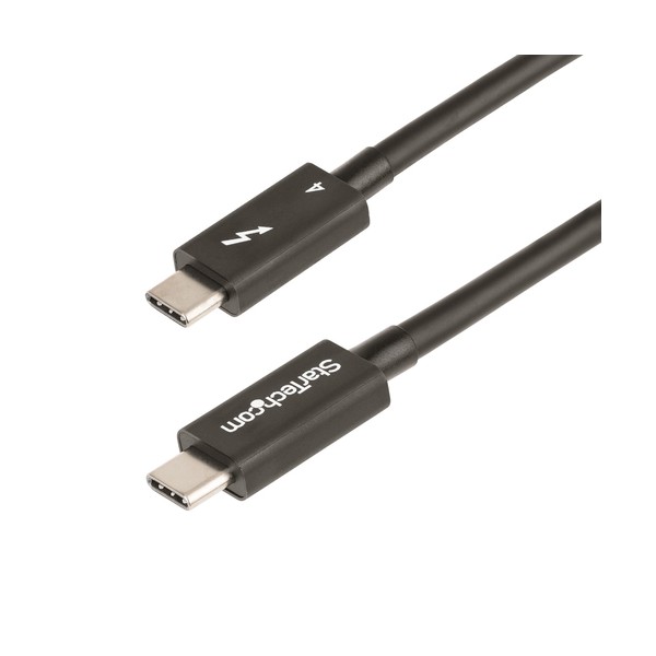 Cavo Thunderbolt 4 - 40Gbps - PD 100W - Video 4K/8KQuesto cavo Thunderbolt™ 4 (40 Gbps) consente di trasmettere segnali Thunderbolt 4 su connettori USB Type-C. Fornisce video, dati e fino a 100W di Power Delivery a dispositivi Thunderbolt, USB e DisplayPortetrade.40 Gbps per Dispositivi Thunderbolt 4 e 3Questo cavo supporta un trasferimento dati di 40 Gbps quando è collegato a una sorgente e a un dispositivo Thunderbolt 4, Thunderbolt 3 o USB4 compatibile. È in grado di trasferire file foto e video quattro volte più velocemente rispetto ai cavi USB 3.2 Gen 2 (10Gbps) standard.Compatibile con USB-CIl cavo Thunderbolt 4 è compatibile con tutti i dispositivi USB Type-C e può essere utilizzato per caricare e sincronizzare i dispositivi mobili. Inoltre, questo cavo può essere utilizzato per collegare e alimentare computer portatili USB-C, come MacBook® e Chromebook™, e periferiche USB-C come dischi rigidi portatili e docking station.Video full-8KIl cavo supporta video 8K 60Hz e DisplayPort 1.4a ed è compatibile con i display DisplayPort. Si può utilizzare per collegare una docking station a un laptop o un laptop a un display.USB Power DeliveryQuesto cavo Thunderbolt 4 fornisce fino a 100W di Power Delivery per ricaricare un laptop o alimentare un display e 15W per dispositivi alimentati dal bus come le enclosure per dischi rigidi.Rete ThunderboltIl cavo può essere utilizzato per collegare a cascata fino a 6 dispositivi abilitati Thunderbolt 4, come i laptop, per una rete Punto a Punto (P2P:peer-to-peer) 10GbE. Inoltre, è possibile collegare due laptop Thunderbolt 4 per il trasferimento/migrazione dei dati.The StarTech.com Advantage