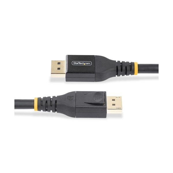 Consente una connessione 8K più lunga senza bisogno di una fonte di alimentazione esternaCollega un monitor abilitato DisplayPort 1.4 4K/8K a una sorgente o a un hub abilitato MST, utilizzando questo cavo DisplayPort 1.4 attivo con certificazione VESA. L'amplificatore di segnale attivo garantisce un'uscita audio e video 8K affidabile fino a 15,2 m senza un ripetitore DisplayPort e una fonte di alimentazione esterna. Questo cavo attivo DP 1.4 è unidirezionale con connettori comodamente etichettati per la sorgente e il display per semplificare la configurazione.Certificato VESA DP8KPer garantire prestazioni e compatibilità senza interruzioni tra i dispositivi abilitati a DisplayPort, il cavo Active DisplayPort è certificato VESA. Supporto DP 1.4 garantito e retrocompatibilità con DP 1.3/1.2Design RobustoQuesto lungo cavo DisplayPort è dotato di un rivestimento esterno in TPE flessibile per ridurre l'usura dovuta alle piegature ad angolo e ai lunghi passaggi del cavo. I robusti dispositivi antistrappo consentono di effettuare pieghe flessibili e morbide, per un comodo posizionamento del cavo. I connettori DP a scatto sono placcati in oro per migliorare la conduttività e le proprietà antinvecchiamento e si fissano saldamente al dispositivo per evitare disconnessioni accidentali.Caratteristiche di DisplayPort 1.4 supportate:Questo cavo DisplayPort 8K supporta tutte le funzionalità DP 1.4:- Risoluzioni fino a 8K 60Hz, 4K 120Hz, 1440p 240Hz con una sorgente e un display DP compatibili- Supporto HDCP 2.2- Larghezza di banda HBR3 (High Bit Rate 3) di 32,4 Gbps- High Dynamic Range 10 (HDR10)- Compressione del flusso di visualizzazione 1.2 (DSC 1.2)- Multi-Stream Transport (MST) per il collegamento a cascata di più monitor- 32 canali audio digitali non compressi- Compatibile con 5K 60Hz, 4K 120Hz e con le precedenti versioni DPIl cavo DP attivo è costruito con schermatura in alluminio-mylar per ridurre al minimo le interferenze EMI e garantire un'uscita audio/video chiara e affidabile. Questo cavo DP certificato VESA è progettato per garantire un'affidabilità a lungo termine ed è la soluzione ideale per l'allestimento di sale riunioni, pareti video e TV signage.The StarTech.com Advantage