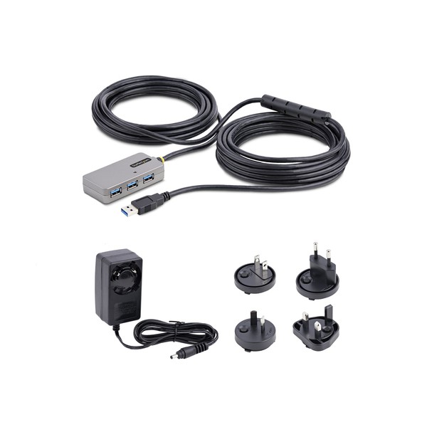 StarTech.com U01043-USB-EXTENDER. Interfaccia host: USB 3.2 Gen 1 (3.1 Gen 1) Type-A, Interfacce hub: USB 3.2 Gen 1 (3.1 Gen 1) Type-A. Velocità di trasferimento dati: 5000 Mbit/s, Colore del prodotto: Nero, Argento, Materiale della scocca: Plastica. Tipo alimentazione: dC, Consumi: 20 W, Voltaggio di ingresso: 100 - 240 V. Larghezza: 40 mm, Altezza: 18 mm, Peso: 100 g. Larghezza imballo: 190 mm, Profondità imballo: 225 mm, Altezza imballo: 55 mm