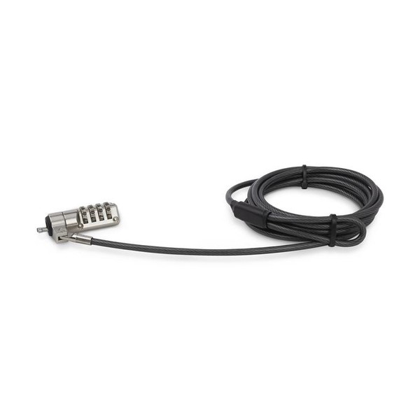 Ideale per l'uso in ufficio o in viaggio, la serratura portatile con combinazione per computer laptop è dotata di un cavo di acciaio con rivestimento in vinile (4,4 mm di diametro). Per proteggere il dispositivo in diversi ambienti di lavoro, il cavo in acciaio flessibile si piega facilmente e può essere avvolto attorno a un oggetto o a un montante fisso.