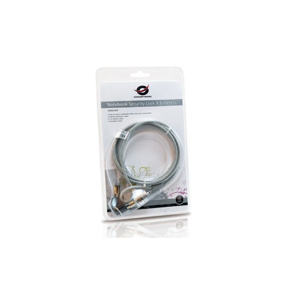 Conceptronic CNBSLOCK15 cavo di sicurezza Argento 1,5 m