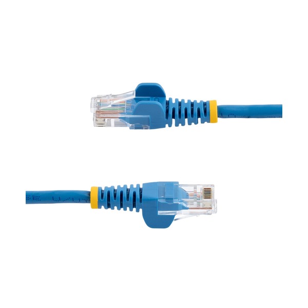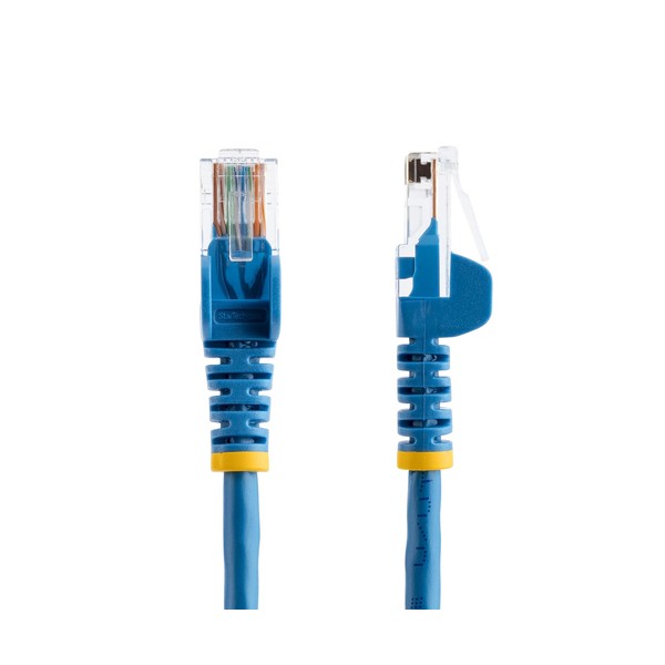 Per garantire prestazioni durature, questo cavo patch Cat5e di alta qualità presenta un design antigroviglio che protegge le clip per connettori RJ45 da danni e consente di evitare l'aggrovigliamento del cavo durante l'installazione. Il cavo presenta inoltre un pressacavo modellato in PVC che impedisce ai punti terminali dei connettori RJ45 di piegarsi in corrispondenza degli angoli acuti, riducendo il rischio di danni ai cavi.