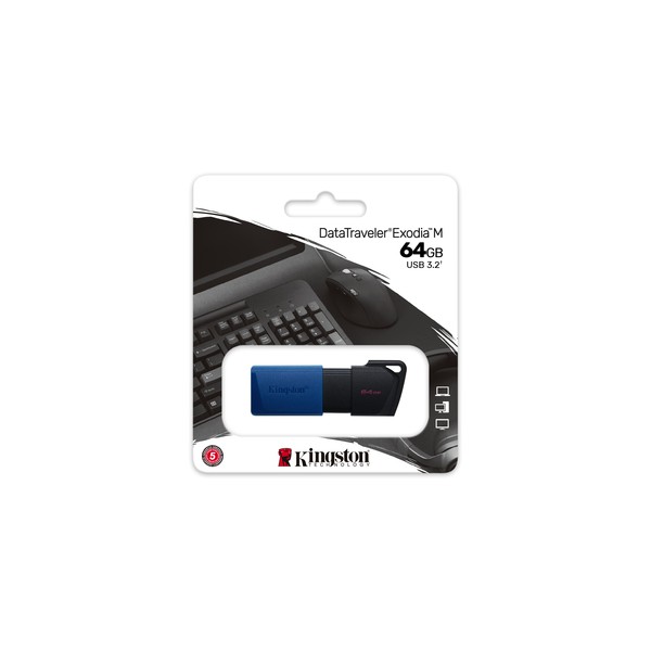 Con cappuccio removibile in svariate colorazioni Il drive DataTraveler® Exodia™ M di Kingston offre tutte le prestazioni dello standard USB 3.2 Gen 1, per la massima semplicità di accesso a laptop, PC desktop, monitor e altri dispositivi digitali. DT Exodia M consente di trasferire file e dati con la massima rapidità e, offrendo una pratica soluzione di storage per documenti, musica, video e tanto altro. È disponibile in diverse opzioni di colori, ciascuna caratterizzante la relativa capacità, che arriva fino a 256GB*. La praticità del suo design lo rende una soluzione di storage on-the-go ideale per qualsiasi impiego, sia esso a lavoro, casa o scuola. Il drive DT Exodia M è accompagnato da una garanzia di cinque anni, con servizio di supporto tecnico gratuito, oltre alla leggendaria affidabilità che caratterizza tutti i prodotti Kingston®.