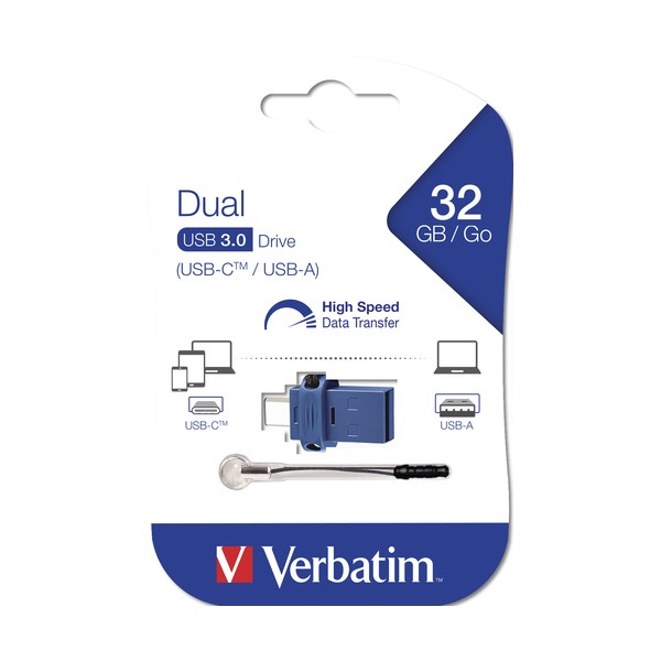 Trasferisce velocemente e facilmente file fra il tuo dispositivo mobile equipaggiato con presa USB-C o un laptop e un altro PC che utilizza una chiavetta USB a doppio connettore Verbatim Store ‘n’ Go per dispositivi USB-C - non è necessario l’utilizzo di un piano dati o una connessione wireless.