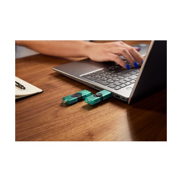 Kingston® DataTraveler® Duo è dotato di 2 connettori USB che consentono di collegare il drive a porte USB Type-A e USB Type-C®* per la massima compatibilità. L'innovativo design con cappuccio mobile elimina il rischio di perdere i cappucci e rende donando eleganza e praticità al drive. Con capacità fino a 256 GB**, il drive DT Duo consente di trasferire facilmente documenti, foto, video, musica e altro ancora tra dispositivi USB-A e USB-C. Il prodotto è coperto da una garanzia limitata di 5 anni, supporto tecnico gratuito e dalla leggendaria affidabilità tipica dei prodotti Kingston®.